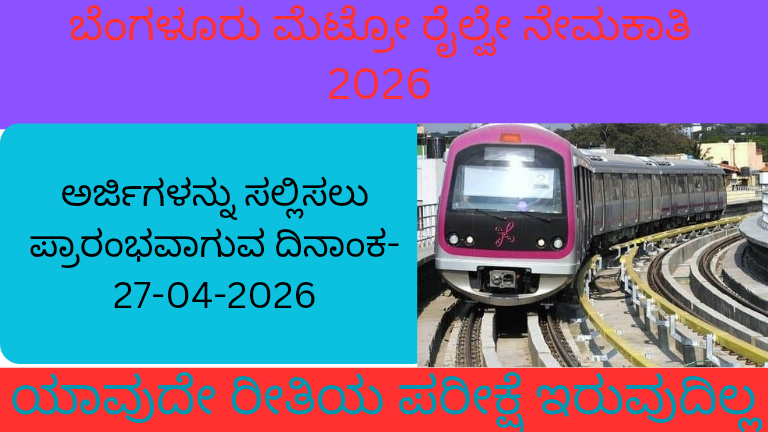 ಬೆಂಗಳೂರು ಮೆಟ್ರೋ ರೈಲು ಕಾರ್ಪೊರೇಷನ್ ಲಿಮಿಟೆಡ್ (BMRCL) 2026ನೇ ಸಾಲಿನ ವಿವಿಧ ಹುದ್ದೆಗಳ ನೇಮಕಾತಿಗಾಗಿ ಅಧಿಸೂಚನೆಗಳನ್ನು ಪ್ರಕಟಿಸಿದೆ. ನಮ್ಮ ಮೆಟ್ರೋದಲ್ಲಿ ಕೆಲಸ ಮಾಡಬಯಸುವ ಅಭ್ಯರ್ಥಿಗಳಿಗೆ ಇದು ಉತ್ತಮ …