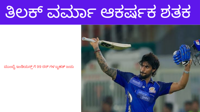 ಐಪಿಎಲ್ 2026: ತಿಲಕ್ ವರ್ಮಾ ಸ್ಫೋಟಕ ಶತಕ, ಗುಜರಾತ್ ವಿರುದ್ಧ ಮುಂಬೈಗೆ 99 ರನ್ಗಳ ದಾಖಲೆ ಜಯ. ಇಂಡಿಯನ್ ಪ್ರೀಮಿಯರ್ ಲೀಗ್ (IPL) 2026ರ ಆವೃತ್ತಿಯಲ್ಲಿ ಸತತ …